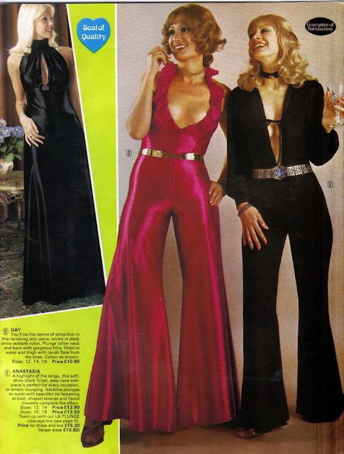 But seriously - oh, God, these fabrics. If you've never worn an acetate evening gown (and who hasn't? Don't ask. It was a long time ago.) you don't know the real meaning of body odor. Not to mention chafing. But not to worry - these lovely numbers come with both a Seal of Approval and a Guarantee of Satisfaction, and what more could any girl ask for just £12.50?